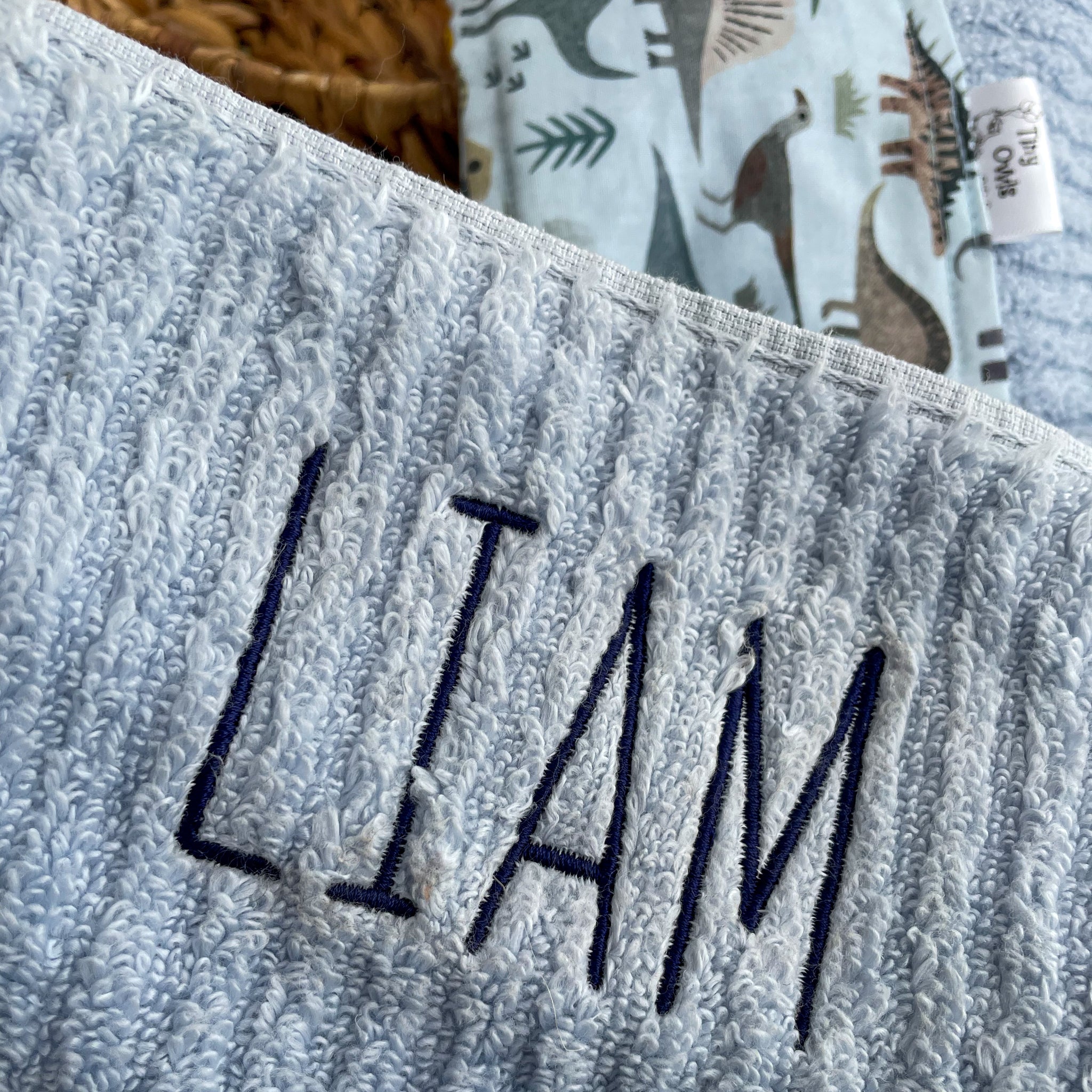 "LIAM" SAMPLE A perfect bath or beach towel for the dinosaur lover in your life!...